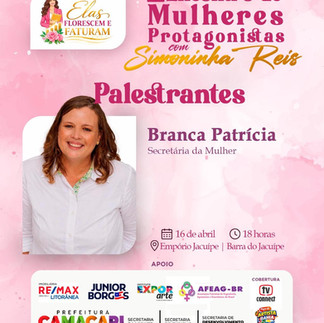 Simoninha Reis, referência no protagonismo feminino, traz não só conhecimento, mas vivência. E ao lado de palestrantes renomadas, o encontro promete despertar algo que muitas vezes fica adormecido: a coragem de dar o próximo passo.