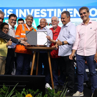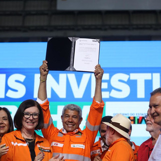 O governador Jerônimo Rodrigues e a presidente da Petrobras, Magda Chambriard, assinaram, na tarde desta quinta-feira (9), um protocolo de intenções que prevê a utilização do Estaleiro São Roque do Paraguaçu, em Maragogipe, como canteiro de obras do novo Sistema Rodoviário Ponte Salvador-Itaparica. O acordo foi celebrado durante evento que contou com a presença do presidente Luiz Inácio Lula da Silva e do ministro-chefe da Casa Civil, Rui Costa.